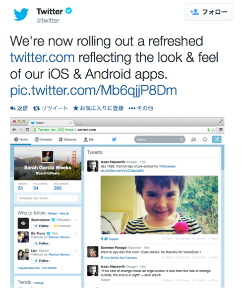 「The Verge」は、デザインが新しくなったブラウザ版Twitterが公開されたと伝えた。新しいデザインは、iOSとAndroidのデザインにより近づいたという。