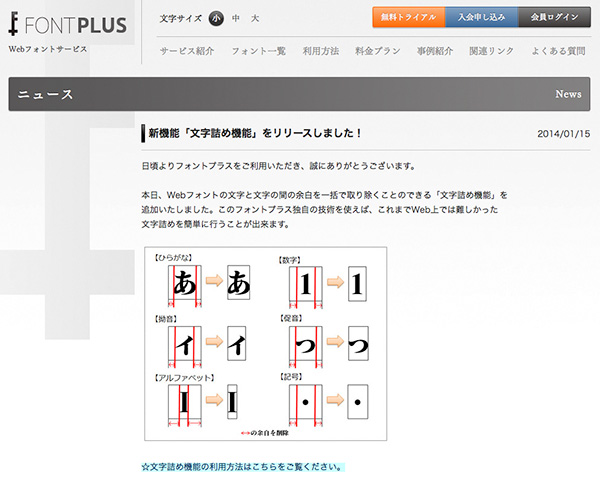 Webフォントサービス「FONTPLUS」に独自の文字詰め機能が実装