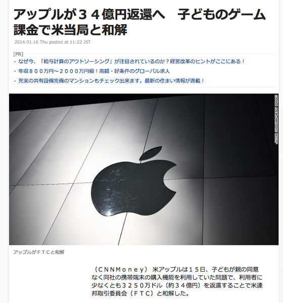 CNN.co.jpによると、問題と指摘されたのはゲームの追加アイテム購入システム。FTCは「iPhoneやiPadのゲームアプリでアイテムなどを購入する際に一度パスワードを入力すると再入力なしで15分間、追加購入が可能な状態だった。この15分間は制限なく購入できてしまうと保護者に通知することを怠った」とした。