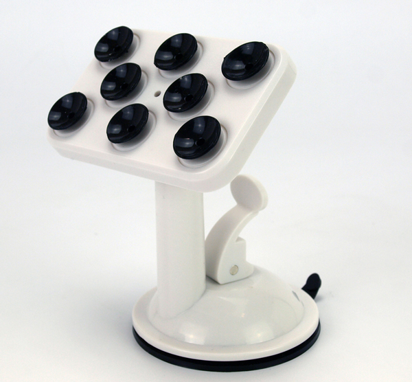 同製品の設置面にはロック式の吸盤を採用し、ワンプッシュで簡単固定することが可能。スマートフォンを固定するホルダーには8個の小さい吸盤が設けられ、均一に固定できるほか、簡単に取り外せる。スタンドとホルダー間は球体間接により縦横360度・上下最大約35度まで色々な角度に調節できる。さらに、タッチパネルに干渉しないので、スタンドに固定したまま操作可能だ。カラーはブラックとホワイトの2色展開。