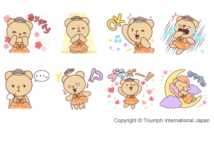 最後は、下着・ブラジャーの「アモスタイル バイ トリンプ」公式キャラクター「アモベア」スタンプ。女性向けのキュートな表情のスタンプが8種類用意されている。※トリンプ(アモスタイル バイ トリンプ)のLINE公式アカウントの「友だち」追加が必要