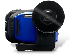 レジャーシーンでの活用を想定した機能としては、グローブをしたままでも操作しやすい大きなボタンやボタン配置、ボディ全面に指を置くスペースを確保している。また、電池蓋は2段階操作で開閉するので、衝撃で蓋が空いてしまうことを防ぐ。モニターは低反射高輝度液晶モニターを搭載し、強い日差しの下や水中でも鮮明な画像を表示できる。