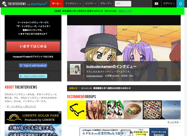 「ザ・インタビューズ」はユーザー同士が相互に質問し、インタビュー形式で回答していくソーシャルインタビューサービス。2011年7月に実験的に公開され、2カ月で会員数が20万人、最大で40万人を超えるなど現在にいたるまで多くのユーザーに支持されてきた。