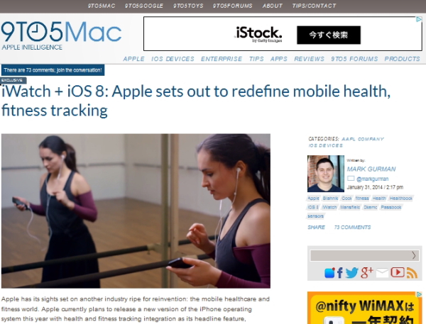ヘルスモニタリング技術に関しては、Googleが血糖値を計測するための「スマートコンタクト」を開発していることを明かすなど、大企業が次期産業として力を入れている分野。報道では、「iOS 8」や「iWatch」は今年中のリリースが予想されており、Appleからのサプライズがあるのかどうか、注目が集まる。