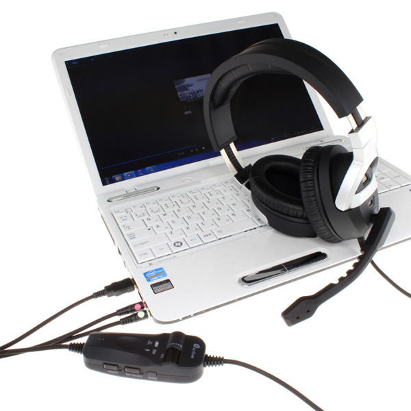本製品は、直径53mmのネオジウムドライバーを搭載し、周波数特性は10Hz-25kHzで、音響技術「HDSSテクノロジー」にも対応している。マイク部は単一指向性で、フレキシブルな位置調整が可能。インターフェイスには、3.5mmステレオミニジャックのマイク端子/ヘッドホン端子、ノイズキャンセリング機能や3Dサラウンド機能を用いる際の電源供給用USB端子が用意されている。音量調整や各種機能のON/OFFなどの制御は、ケーブル途中にあるコントローラーでの操作が可能。本体サイズは200(幅)×200(高さ)×70(奥行)mm、ケーブル長は2.8mで、重量は約450gとなっている。