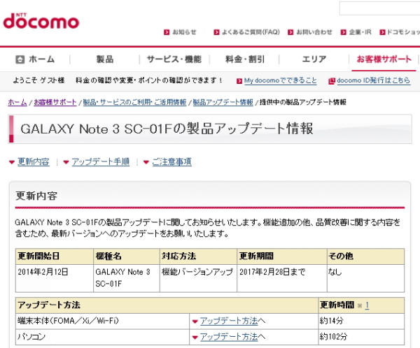 「GALAXY Note 3 SC-01F」の製品アップデート情報