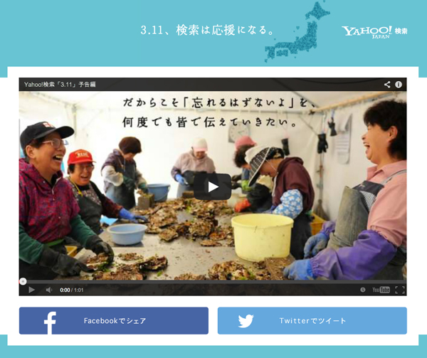 Yahoo!で「3.11」検索すると募金できる「Search for 3.11」チャリティー実施