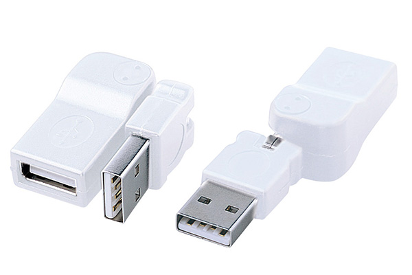 本製品は、コネクタを上下に各90度/左右に各180度曲げられることが特徴。コネクタの180度回転にも対応しており、同社リリースでは“3D USBアダプタ”と称されている。この構造により、接続しづらい狭く奥まった場所にあるUSBポートにも、容易なケーブルの挿入が可能。屈曲によるケーブルの断線も予防できる。