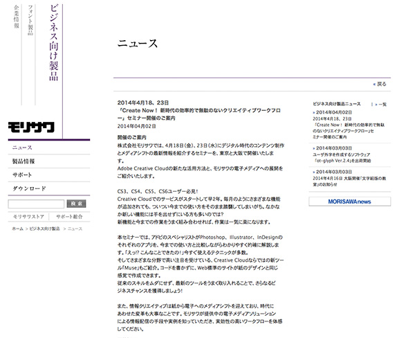 モリサワ、アドビ協力の無料セミナーを東京と大阪で開催