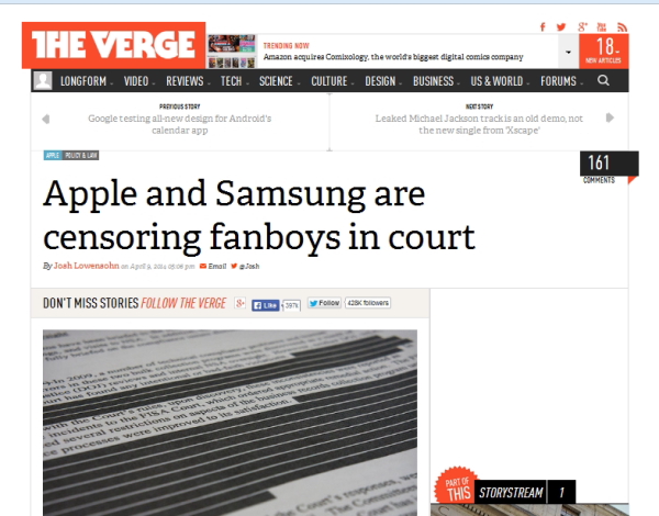 URL:http://www.theverge.com/2014/4/9/5596358/apple-and-samsung-are-censoring-fanboys-in-court