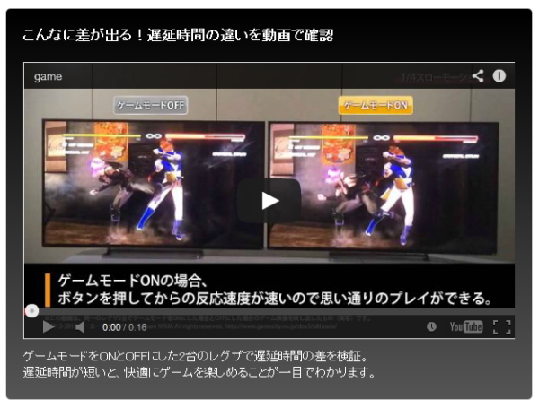 ゲームプレイに対応する機能としては、低遅延表示を搭載。画像処理の遅延時間を短縮し、ボタンを押してからのタイムラグを短くしている。