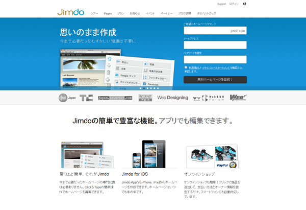 WeeblyはスタートアップインキュベーターであるY Combinator出身のスタートアップだ。サービス的には先述のWixやJimdoらとほぼ同じだが、Y Combinator出身者という輝かしいレッテルをうまく利用して最近急成長している。Weeblyもまた、2014年4月に3500万ドルもの大型調達をはたしており、本格的に海外進出を目指しているようだ。Weeblyを使った運営サイトはすでに2000万を超えている。