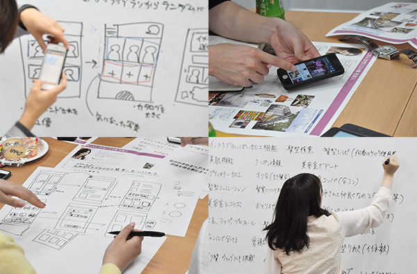 いろいろなバックグラウンドをもつデザイナーが参加したため、非常に盛り上がっていた。実際にスマートフォンを使って考えるチームや、紙にアイデアを羅列するチームなど、アウトプットの手法はさまざま。課題を詰めて行くプロセスにおいても、わかりやすさ重視か、新しさ重視か、一点集中型か、多機能型かなど、多くの議論が交わされた。実施後のアンケートでは「多くのやり方や考え方に触れられて刺激になった」という感想が寄せられた。
