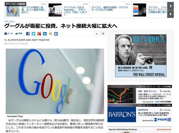 グーグルが衛星に投資、ネット接続大幅に拡大へ(WSJ)