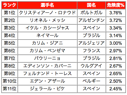 調査によると、サイバー犯罪者はポルトガルののクリスティアーノ・ロナウド選手の名前を使って、マルウェア感染を目的としたWebページにユーザーをおびき寄せる例が最も多いことが明らかとなった。同社では、Web検索による感染リスクが高いFIFAワールドカップ ブラジル大会に出場予定の選手を「レッドカードクラブ」と名付け公開している。
