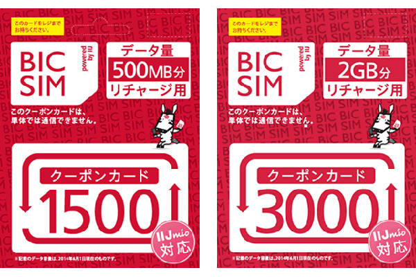 価格はデータ量が500MBの「IIJmioクーポンカード1500」が1500円(非課税)、2GBの「IIJmioクーポンカード3000」が3000円(非課税)。チャージしたクーポンの有効期限は3カ月後の月末まで。
