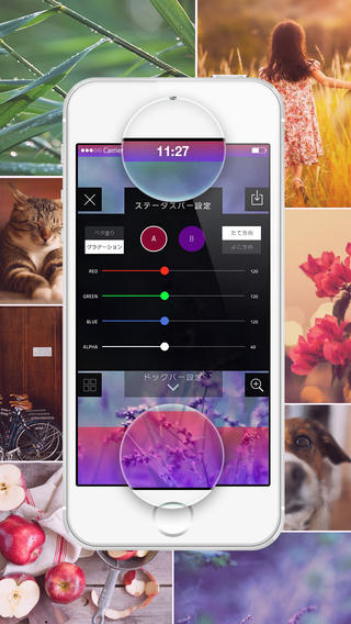 「OBARLAY」は、iPhoneのホーム画面やロック画面において、お気に入りの写真と重ねておしゃれにチェンジしたり自分だけの組み合わせを作ることで見たこともないような画面を作成できるアプリ。使用する画像を選択し、スライダーを動かして画像を調整するだけで完成する。使用する画像は、カメラで撮影するかカメラロールから好きな画像を選択することが可能。色の濃度の調整なども行える。このほか、「おまかせ」機能でデザインパックを豊富に用意しているという。