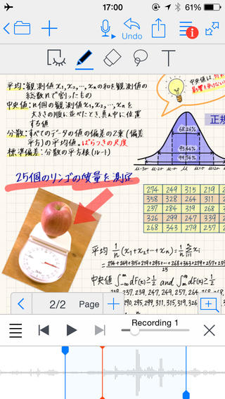 今回のアップデートでは、書いた文字を音声を紐付けることでスムーズな再生時の頭出しを実現したほか、写真を自由な形で切り取り加工してノートに貼り付けられるようになった。また、図形の追加や整列などの編集機能が追加されたほか、タブによる複数文書間のコピー&ペーストなども行えるようになった。さらに、ズーム・プレゼンテーションを実現する「ライブ・プレゼン」機能が追加されたほか、日本語手書き入力エンジン「mazec」の機能も強化された。UIはフラットデザインを採用したほか、次の操作がヒントヘルプに表示されるようになった。