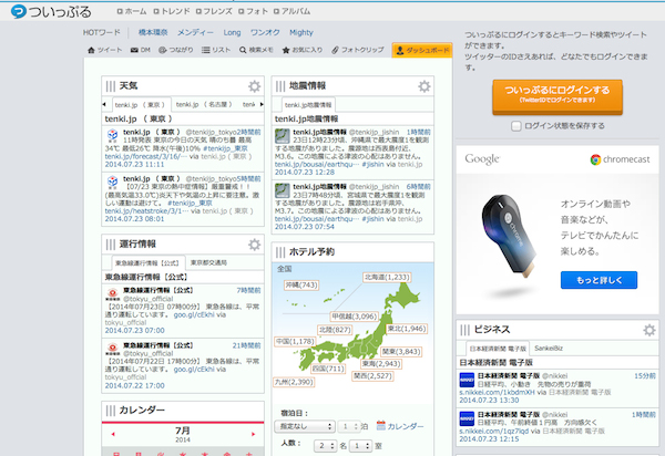 ビッグローブ株式会社は、Twitterクライアント「ついっぷる」において、ニュース、天気、電車の運行情報など仕事における情報収集に役立つツイートをまとめて表示する「ついっぷるオフィス版」の提供を開始した。TwitterのIDは不要で、誰でも閲覧可能だ。