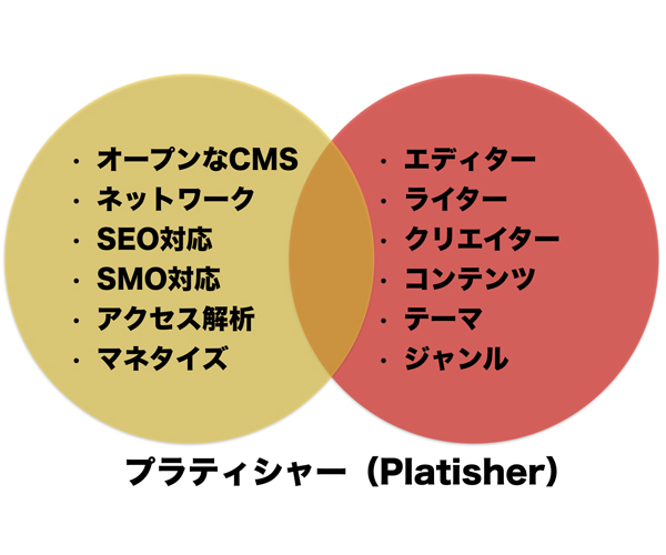 プラティシャーのビジネスモデルは、雑誌のそれであり、CMSとコンテンツ、エンジニアとエディター、テクノロジーと編集力、プログラムとクリエティブ、それらの最適な中間点に立つ者が栄華を極める、そういう市場が生まれつつあるのである。