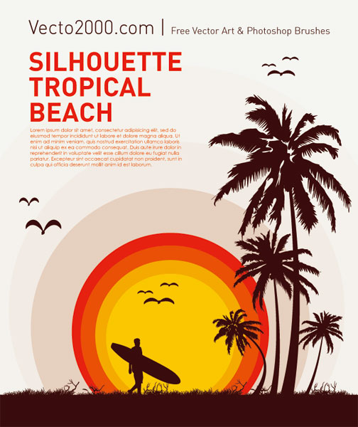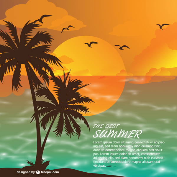 ヤシの木のシルエットと夕陽をモチーフにした、イラストテンプレート。Illustratorなどで文字部分を置き換えるだけで、ちょっとしたフライヤーやポスターを作ることができます。