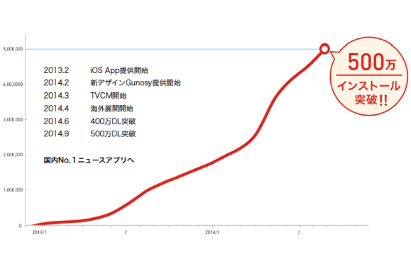 株式会社Gunosyは、同社が提供するニュースアプリ「グノシー」が、8月末に累計500万ダウンロードを突破したと発表した。