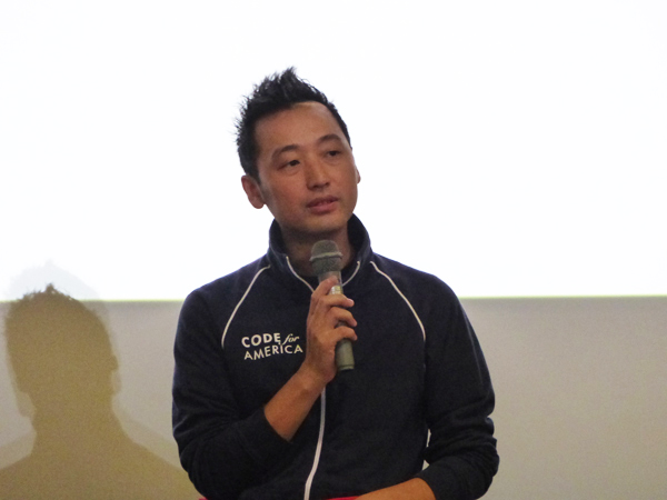キーノートスピーチのひとつめは、米国のシビックテックコミュニティ「Code for America」のAndrew Hyder(アンドリュー・ハイダー)氏。Hyder氏は、「われわれはオープンソースの技術を使って、自治体のサービスを使いやすいものに変えていくことに取り組んでおり、インターネットを使って街を安全で楽しいところにしたいと考えています。そして多くの人が同じ考えを持っていたことを知り、シビックテック活動を始めました。アメリカではCode For Americaがシビックテックムーブメントの核になっており、アメリカのすべての市を、ユーザー調査を通してより良くしていこうと取り組んでいます。われわれが活動を始めて4年間が経ちますが、その経験を活かしてCode for Japanのみなさんを支援していきたいと思います」と語った。