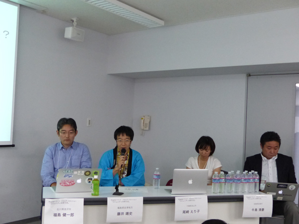 続いて、「オープン/オープンガバメント」「震災復興」「テクニカル」という分野に分かれてセッションが行われた。「震災復興」の中では、福島県浪江町の陣内一樹氏が、分散避難している町民にタブレット端末を配布するにあたって、町民向けのアプリ開発を行った「Code for Namie」プロジェクトについて報告した。