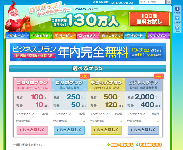 GMOペパボ、「ロリポップ!」のビジネスプランを提供開始
