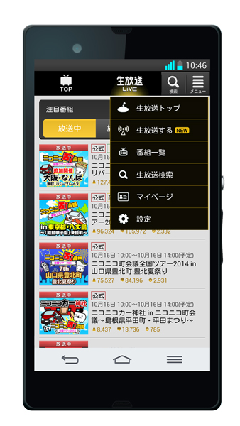 Android版niconicoアプリ、ユーザー生放送の配信に対応