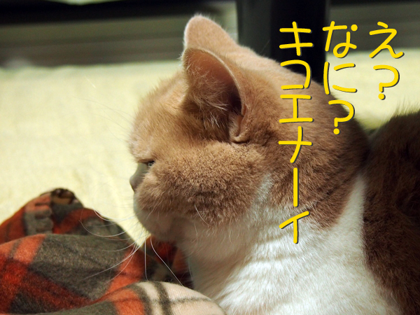 というわけで、茶色のひざ掛けをおいて「あなたはこっち!」と呼びかけます。