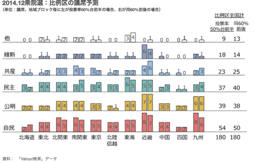 ヤフー株式会社は、2014年12月14日に投票が行われる「第47回衆議院選挙」を対象にした議席予測、「Yahoo! JAPANビッグデータレポート ビッグデータが導き出した第47回衆院選の議席数予測」を公開した。