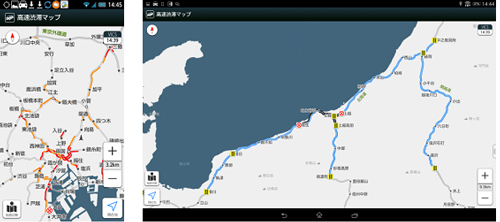 今回提供されるタブレット最適化UIや新機能は、規制や行楽などで車の利用が大幅に増加すると予想されている年末年始を意識。「渋滞」「混雑」「チェーン規制」「通行止め」を色分けしひと目でわかるようになっていたり、日本地図上に高速道路だけを配置した広域地図を採用するなど、長時間にわたる渋滞発生や長距離移動などの中でも便利に使ってもらえるようアプリを強化している。