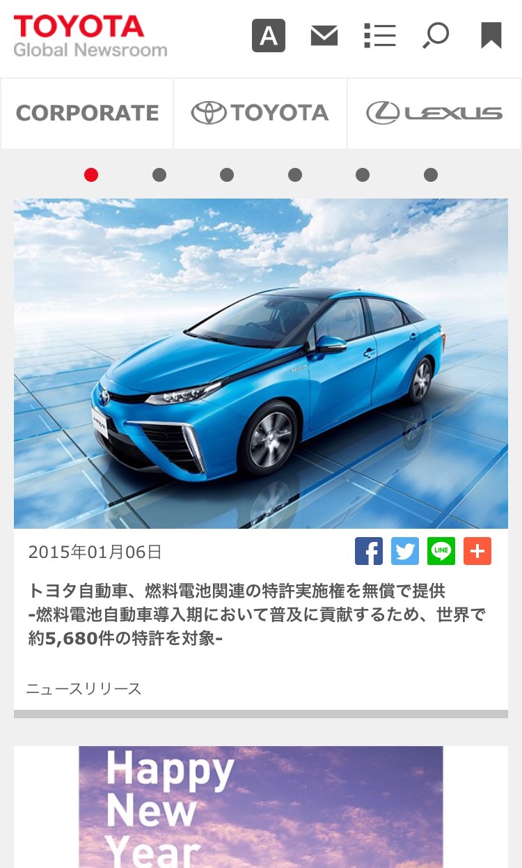トヨタ自動車は6日、同社が単独で所有する燃料電池関連の特許の実施権を無償で提供すると発表した。同社は昨年12月に燃料電池車「MIRAI」を世界に先駆けて発売しているが、今回の対応を「燃料電池自動車導入の初期段階において普及に貢献するため」としている。