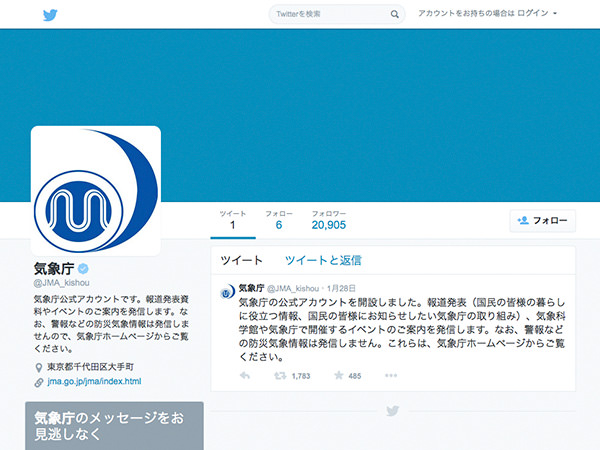 気象庁、広報活動のためのTwitter公式アカウントを開設