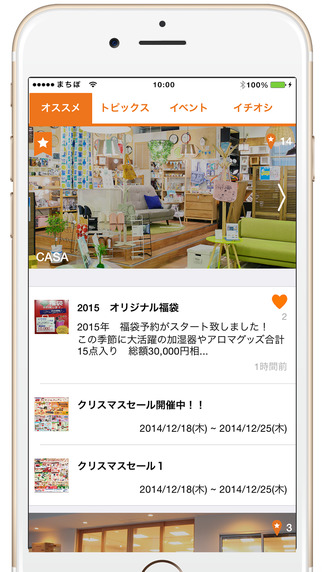 「まちぽ」は、静岡市を中心に地域のお店や住人、地元出版社によるさまざまな情報を発信しているローカルニュースサイトの公式アプリ。ユーザーの半数以上がスマートフォンからの閲覧という背景から、iPhoneアプリの開発・リリースに至ったという。掲載情報はタブごとのタイムライン方式で表示されるので、簡単操作で読みたい情報にアクセスすることができる。実際に街歩きをしながら近くの店舗に関する最新情報を入手したり、ユーザー自身が訪れた店舗やサービスに関する口コミを写真と一緒に投稿することができ、地域密着型のソーシャルメディアとして利用が広がることも見込んでいる。