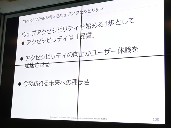 Yahoo! JAPANと株式会社ビジネス・アーキテクツ(BA)、株式会社ミツエーリンクスの3社は9日、企業のWeb担当者を対象としたセミナー「マルチデバイス時代のWebアクセシビリティ」を東京・六本木のYahoo! JAPANミッドタウン・タワー11Fセミナールームにて開催した。Webアクセシビリティの最新動向がわかる同イベントについて、その詳細をレポートする。