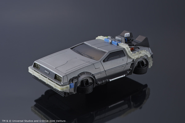 スイッチを入れるとLEDが発行し、劇中のタイムスリップをするシーンを再現するほか、着信時のフラッシュライトギミックも搭載しており、iPhoneのフラッシュライトでヘッドライトが発光する。