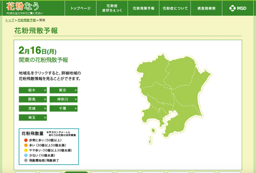 MSD株式会社は2月2日に、花粉症の人に役立つ情報サイト「花粉なう」で、期間限定で「花粉飛散予報」を開始したことを発表した。