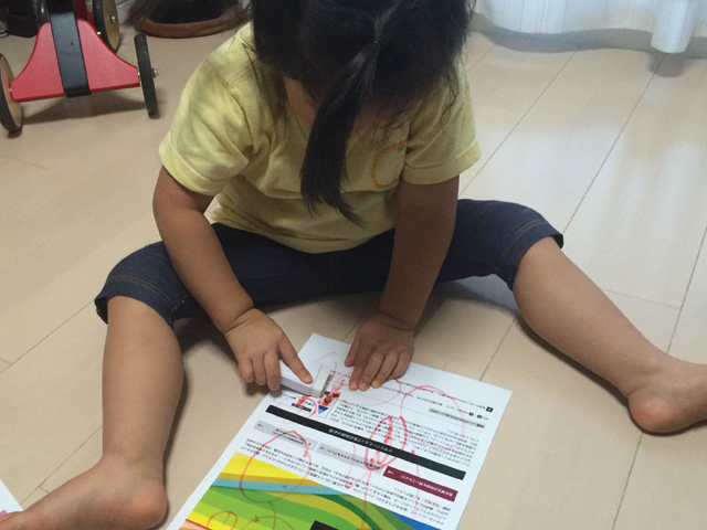 それでは、製品レビュースタート。あらゆるレベルのユーザーに対応するという触れ込みなので、編集部員の娘、3歳児に試してもらうことにした。注意書にあった「詳しい取扱説明所がなくても、簡単に遊ぶことができる」ということを証明していきたい。子供であれば直観的な操作で使いこなすことができるはずだ。