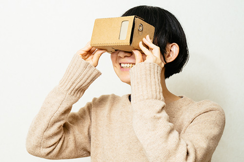 「ハコマンションVR」は、同名のスマートフォンアプリを立ち上げてダンボール製キット「GoogleCardboard」(ハコスコ社製)にセットすることで、バーチャル空間上の360度ビューで「イニシア船橋夏見」のモデルルームを体験できるもの。向いた方向に合わせて360度の映像が画面に映し出されるので、より空間に没入することができるという。