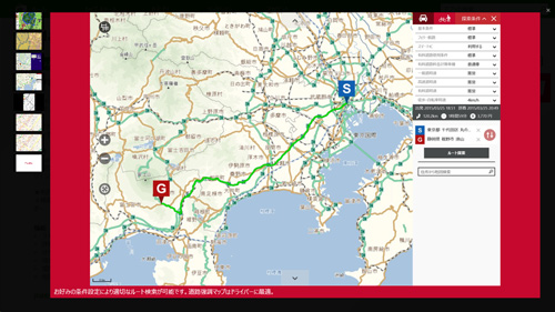 地図データはオンライン提供されるので、常に最新情報を反映した地図を利用できる。地図の縮尺はピンチイン・ピンチアウトでスムーズに変化させることができ、快適に使うことができる。