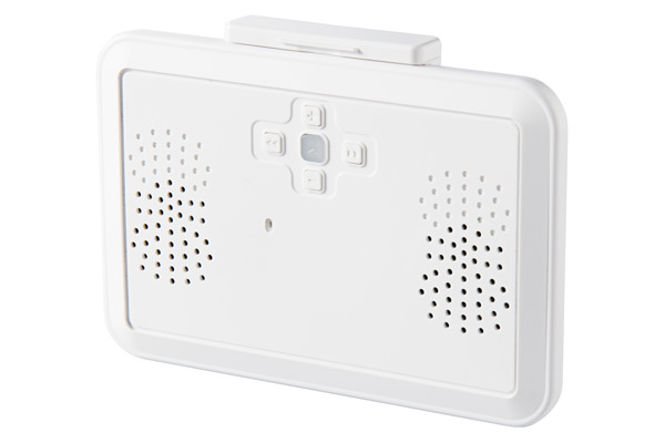 スマートフォンなどの携帯機器を収納できるバックルを搭載したスピーカー。高透過性シートを採用し、高い視認性を実現している。スピーカーユニットは背面に配置しており、背面の壁を使って前面に反射させることにより、広がりのある音を楽しめる。防水仕様はIPX4相当で、縦置きと横置きの両方に対応する。電源は単3形電池3本で、アルカリ乾電池使用時は連続約30時間の再生が可能。音量は小さくなるが、電池が切れても使える設計となっている。