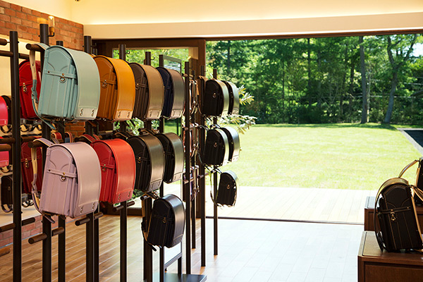 軽井澤工房では、人生で一度きりのランドセル選びが幸せな時間になるように、家族とゆっくり過ごせる「親子の思い出づくり工房」が目指された。牛革/コードバン/クラリーノ・エフ/ヌメ革など多様な素材による57種類の土屋鞄のランドセル全ラインナップが並ぶ。店内の大きな窓からは、広々とした芝生の庭に出ることができ、ガラス張りの工房を自由に見学することが可能。店内奥には、工房見学スペースがあり、ランドセル製造風景を目と耳と匂いで直接感じることができる。創業当時にランドセルづくりを行っていたミシンの展示もあり。営業時間は10:00〜18:00で、工房/職人の休みはWebサイト上のカレンダーで確認できる(http://www.tsuchiya-randoseru.jp/user_data/factory_karuizawa.php)。