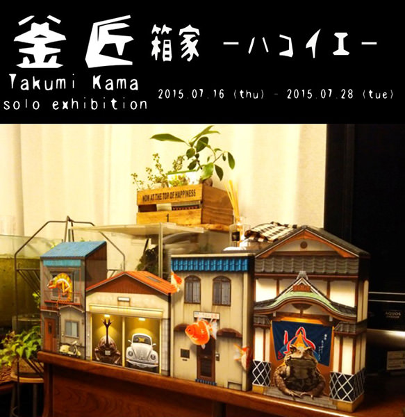 新たな芸術表現の“生命”が誕生する研究/実験の場としての位置付けで展開されているBAMI galleryでは、釜匠氏の個展「箱家 ーハコイエー」を、2015年7月16日(木)より開催している。会期は2015年7月28日(火)まで。会期中無休で、開館時間は12:00〜18:00となっている。