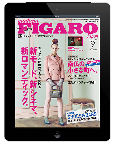 「フィガロジャポン」は“パリ生まれ、東京育ち”のスタイ誌で、2015年3月に創刊25周年を迎えた。20〜40代の女性を主な対象読者とし、モード/ビューティ/インテリア/グルメ/カルチャー/旅情報などを発信している。最新号となる2015年9月号の特集は「おしゃれと映画のコードが変わる 新モード、新シネマ、新ロマンティック。」。電子版の発売により、いつでもどこでも気軽に購読できるようになった。