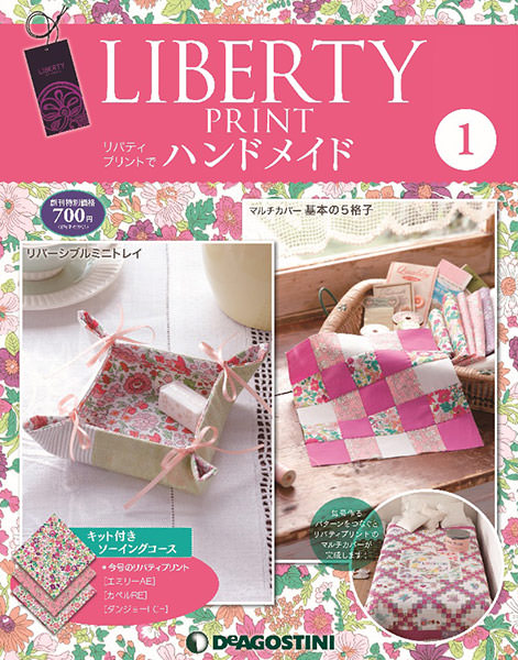 株式会社デアゴスティーニ・ジャパンは、手作りを楽しめるマガジンシリーズの隔週刊「リバティプリントでハンドメイド」を創刊し、9月1日より創刊号を発売した。リバティプリントとは、ロンドンのリバティ社による繊細かつ鮮やかなプリント生地。毎号キットとして付属するリバティプリントと副資材(ボタンやファスナーなど)を用いてグッズ作り/ソーイングを始められる。A4判変型20ページ、隔週火曜発売(一部地域を除く)で、全65号の刊行号数を予定。創刊号は特別価格として税込700円で販売されており、第2号以降は通常価格が税込各1490円となる。