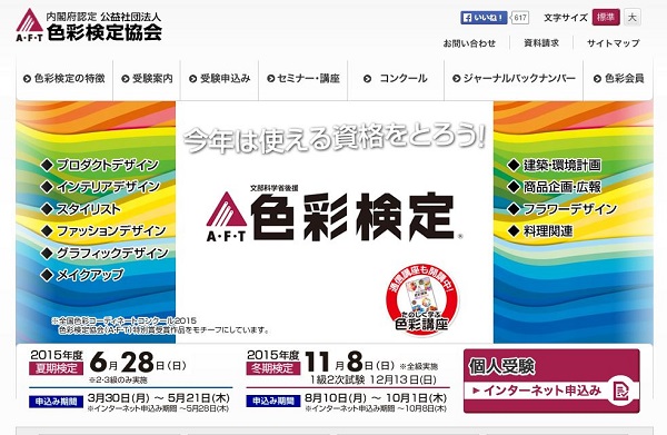 ●資格概要:文部科学省後援の検定試験。グラフィックデザインやインテリアデザインなど、さまざまなビジネスに活かせる検定で、比較的認知度が高い。1級は選択式と合わせて記述式になっている。