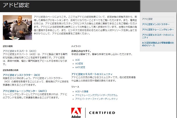 URL:http://www.adobe.com/jp/support/certification/