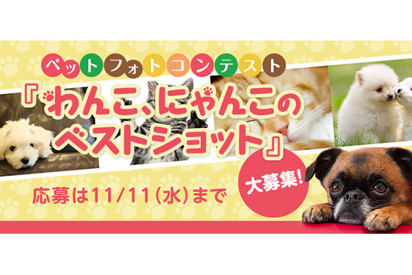 キヤノンマーケティングジャパン株式会社は、写真を活用して楽しめるWebサービス「withPhoto」にて、ペットフォトコンテスト「わんこ、にゃんこのベストショット」を開催中。2015年11月11日(水)まで作品の応募を受け付けている。可愛さが伝わってきたり、思わず笑ってしまったりするペットの姿を撮影した作品が募集されており、1人あたりの応募点数の上限は10点(1点につき30MBまで)。応募フォーム経由でのデジタルデータのみ受け付けており、プリント/スライドなどの応募は不可となっている。
